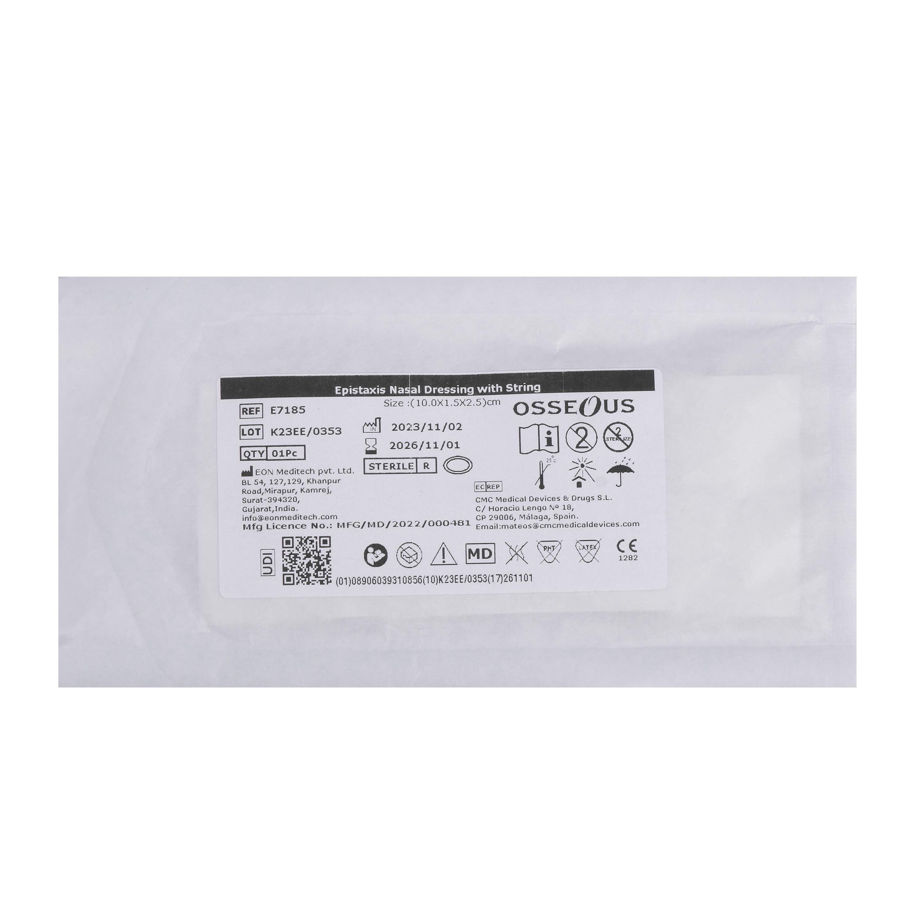 Merocel 10cm nasal pack designed for effective epistaxis control. Made from hypoallergenic, non-adherent, and highly absorbent material. Ideal for gentle wound care and maximum patient comfort