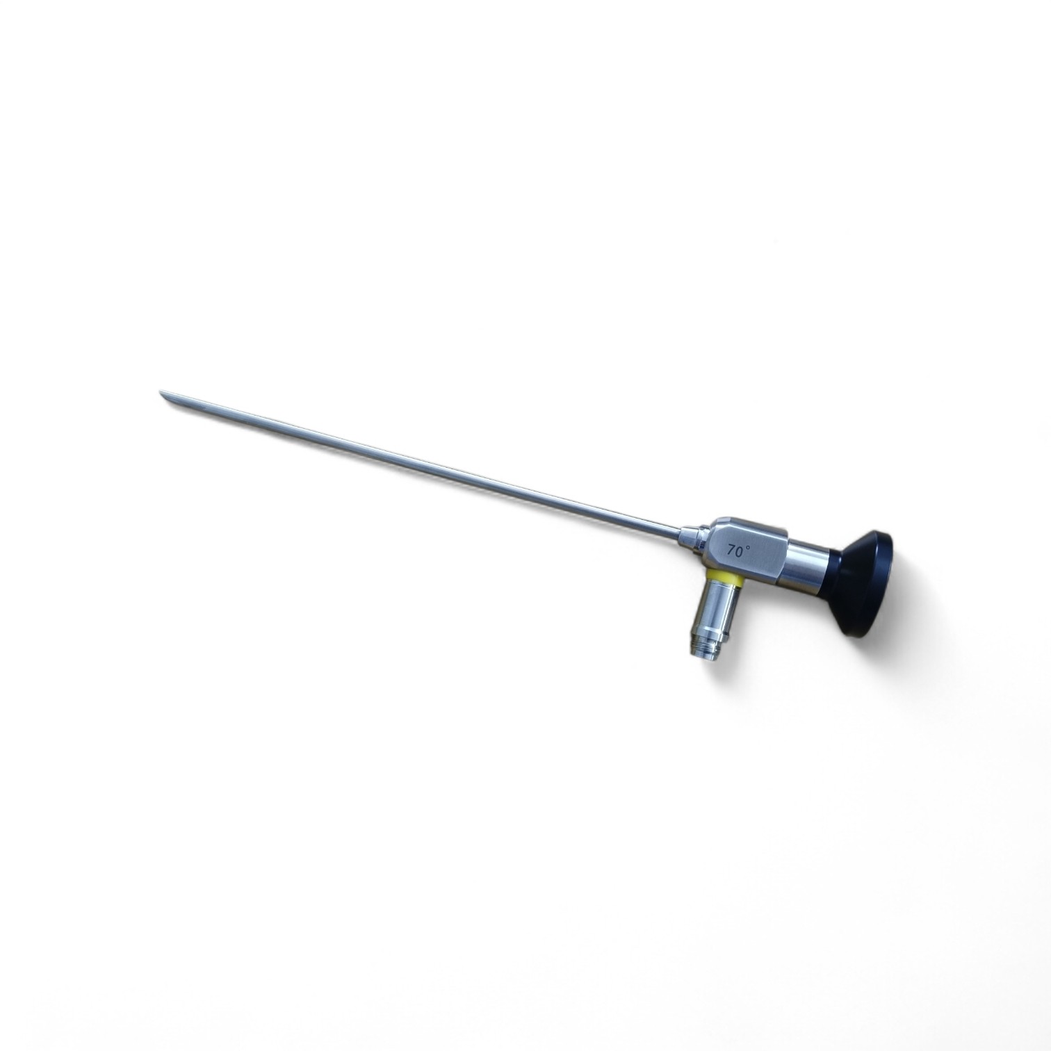 A rigid ENT laryngoscope with a 70° wide-angle view (Downward - In the same direction as the light source), designed for advanced visualization in laryngeal examinations and surgeries. With its 4 mm diameter and 175 mm length, it provides sharp, high-resolution imaging for precise diagnostics and operative use.