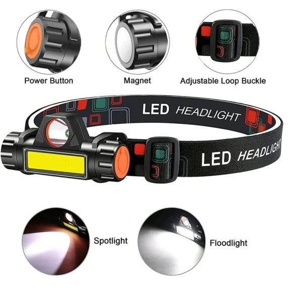 The Mini Head Lamp With Magnet is a compact and lightweight LED lamp designed for hands-free illumination. It features a strong magnetic base for easy attachment to metal surfaces, making it versatile for outdoor activities, work environments, and emergency use. With adjustable brightness and a rechargeable design, this lamp ensures convenience and reliability anytime, anywhere.