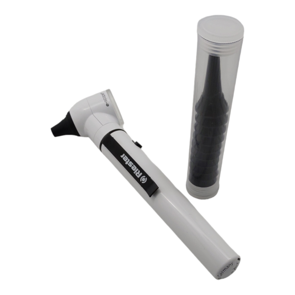 A Riester ear otoscope is a precision medical diagnostic instrument designed for examining the external auditory canal and the tympanic membrane (ear drum). It provides illumination, magnification, and specula (nose or ear tips) to allow a clinician to see inside the ear safely, assess for infection