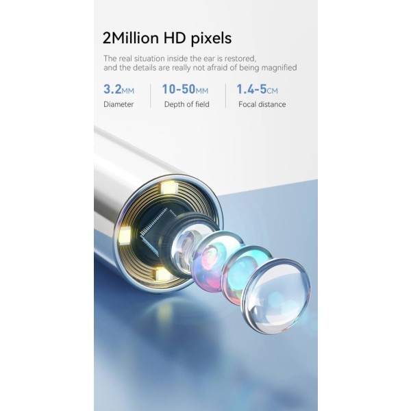 High-precision endoscope lens with fixed focus (optimal at 1.4–2cm).