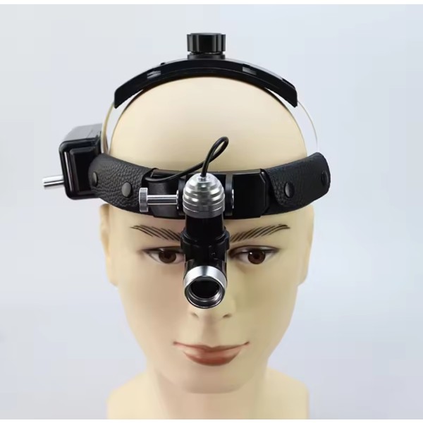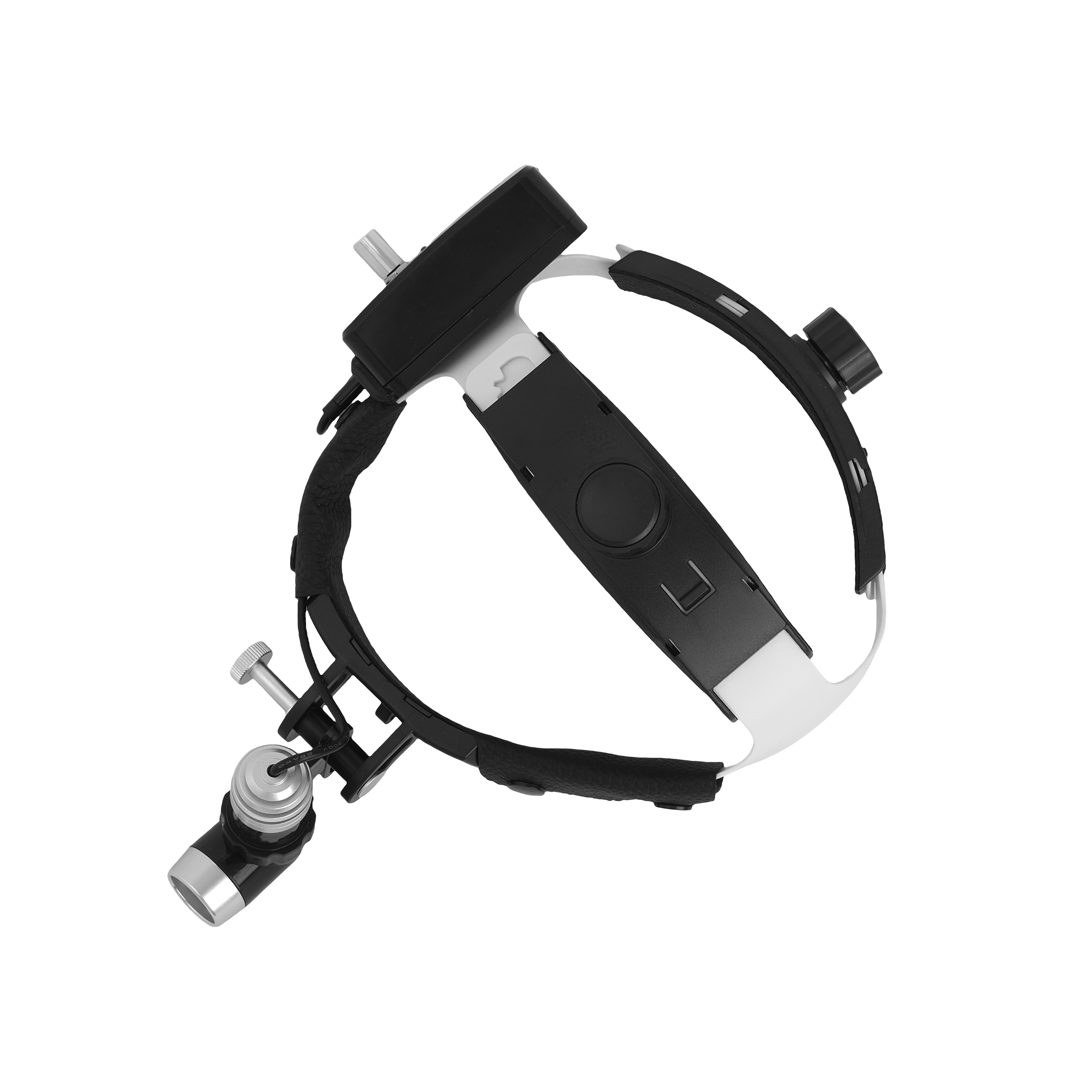 • surgical LED headlight with adjustable brightness and focus, designed for long procedures in clinics or operating rooms