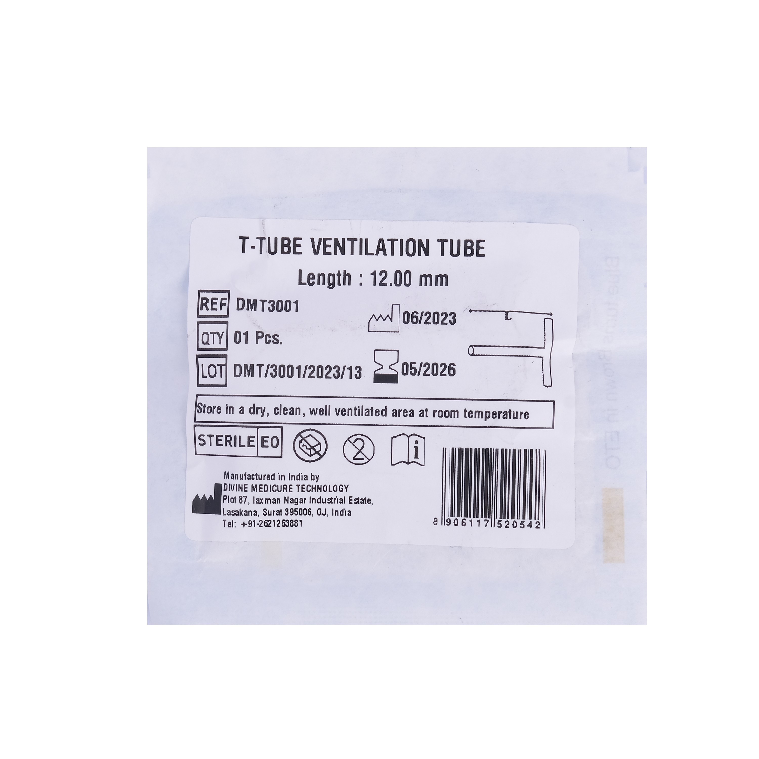 • T-shaped tube used for middle ear ventilation, featuring dual flanges for stable positioning. Indian origin