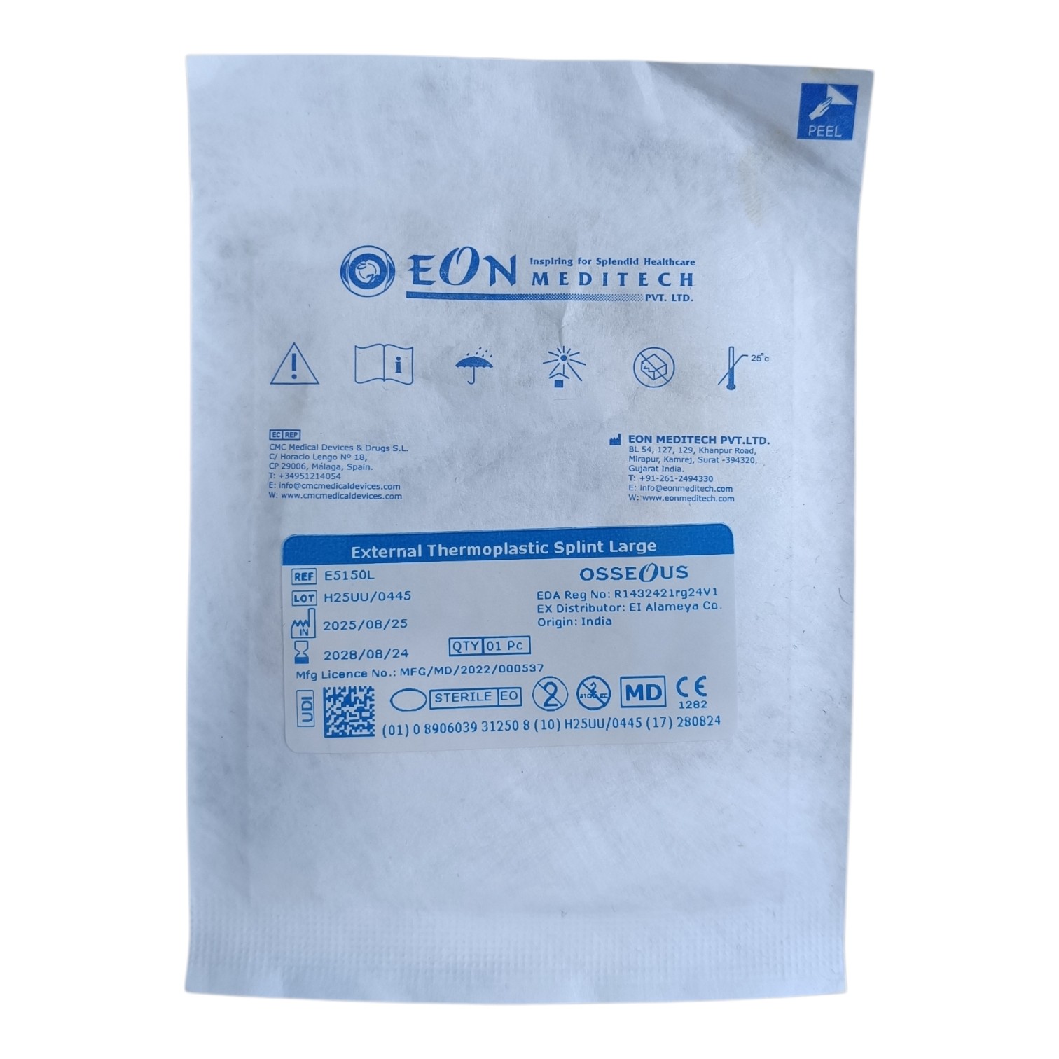 Lightweight thermoplastic external nasal splint designed for postoperative nasal support. Provides stability and protection during healing with customizable fit